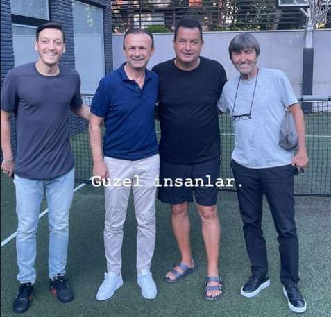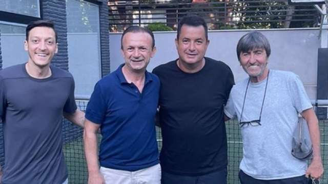 Galatasaray'dan geçen sezon forma giyen Halil Dervişoğlu'nun babası ve menajeri Muzaffer Dervişoğlu Hull City'nin sahibi Acun Ilıcalı, Mesut Özil ve Rıdvan Dilmen ile buluştu