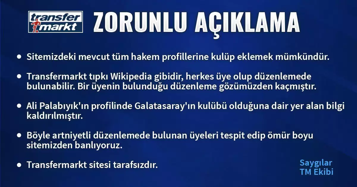 transfermarkt bu tepkileri görerek Ali Palabıyık'ın profilini yayından kaldırdı ve düzenlemeye başladı.