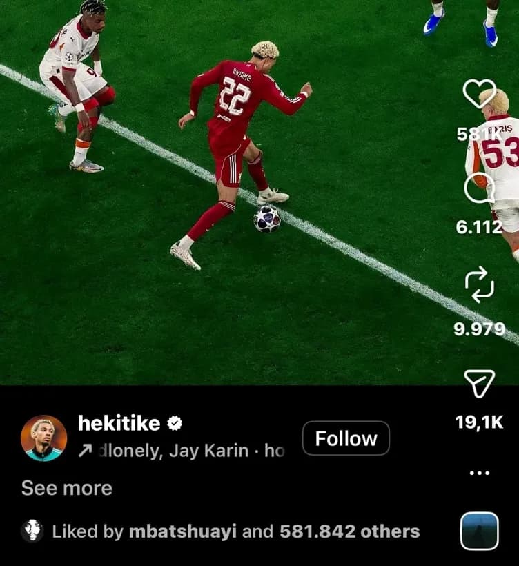 Belçikalı forvet Michy Batshuayi’nin Ekitike’nin maç sonrası Instagram paylaşımını beğenmesi sosyal medyada tartışma yarattı.