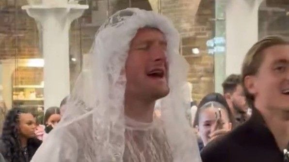 2023/24 sezonunda kiralık olarak Beşiktaş forması giyen 29 yaşındaki Joe Worrall, St. Pancras Tren İstasyonu'nda gelinlikle şarkı söylerken görüntülendi.