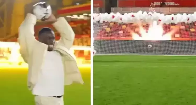 Uzun taş atışlarıyla bilinen Nijerya asıllı İtalyan futbolcu düzenlenen cinsiyet öğrenme etkinliğinde de aynı yöntemi tercih etti.