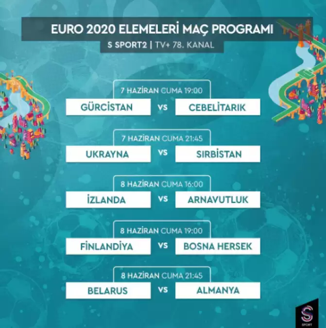 Euro 2020'de yer alan diğer dev maçlar da S Sport 2, TV+78 ekranlarından canlı olarak yayınlanacak.