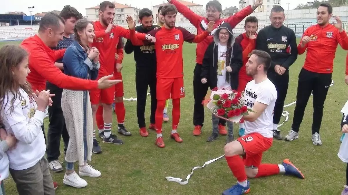 Kütahya Süper Amatör Lig'de Çamlıcaspor ve Özel İdare Köy Hizmetlerispor arasında oynanan maçın ardından Çamlıcasporlu Ahmetcan Gümüş, kız arkadaşına maç sonrası evlenme teklifinde bulundu.