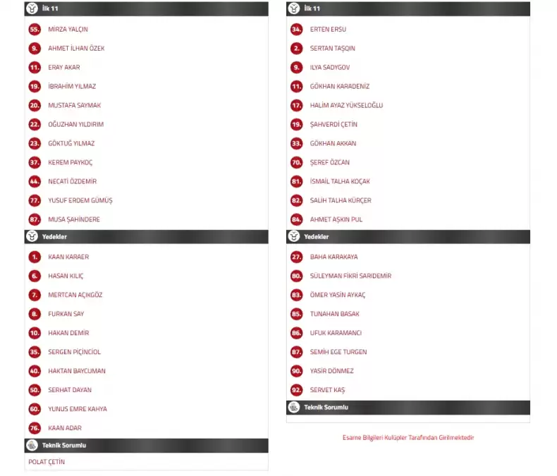 Öte yandan, bugün Türkiye Kupası 3. turunda Aliağa FK ile karşılaşacak olan Serik Spor Futbol A.Ş'de esame listesi belli oldu. Listede teknik direktör Sergey Yuran'ın ismi yer almadı ve o kısım boş bırakıldı.