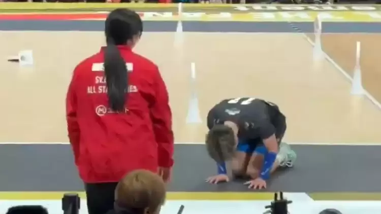 Japon voleybolcu Yuji Nishida, attığı topun saha görevlisine çarpmasının ardından parkede yüzüstü kayarak, geleneksel bir Japon özür dileme şekli olan “dogeza” yaptı.