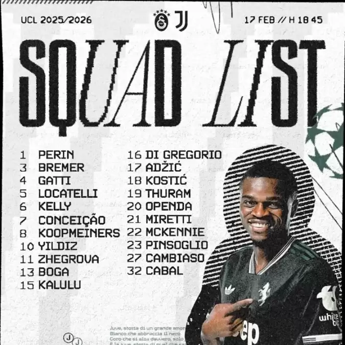 Juventus'un Galatasaray maçı kamp kadrosu açıklandı. Yapılan açıklamada Dusan Vlahovic ve Jonathan David'in yer almadığı ortaya çıktı. 2 futbolcu da sakatlıkları sebebiyle karşılaşmada forma giyemeyecek.