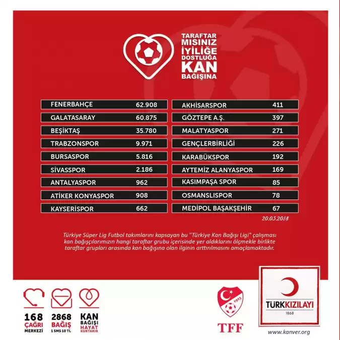 Kan Bağışı Ligi'nde Süper Lig süresi boyunca taraftar formu doldurarak kan bağışı yapan 181.964 bağışçı, 545.892 hayat kurtardı.