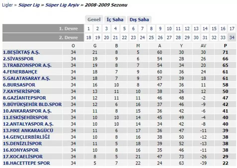 2017-18 sezonuna benzer sezon 2008-09 ve 38 puanla...