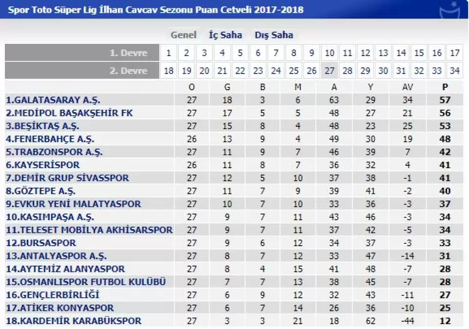 Spor Toto Süper Lig 27.haftası geride kalıyor. Şampiyonluk yolunda mütihş bir yarış devam ederken kümede kalma savaşı da iyiden iyiye kızıştı. Ligde kalması artık mucize olan Karabükspor dışında yaklaşık 6-7 takım ligde gelecek sezonda mücadele edebilmek için uğraşıyor.