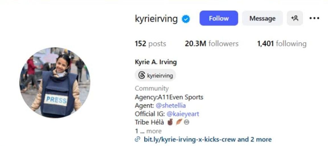 Kyrie Irving daha önce sosyal medya hesabının profiline 24 Mayıs 2025'te İsrail'in düzenlediği hava saldırısında hayatını kaydeden Gazze'nin en genç medya aktivisti olarak tanınan 11 yaşındaki Yaqeen Hammad'ın fotoğrafını koymuştu.