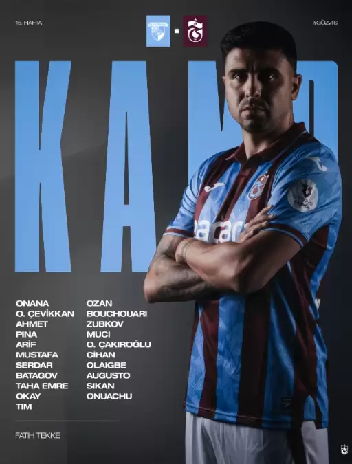Karadeniz ekibinin Göztepe maçı kafilesinde yer alan 21 futbolcu şöyle: