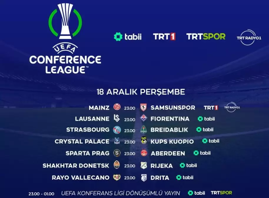 UEFA Konferans Ligi'nde canlı yayın programı şöyle: