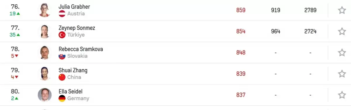 Öte yandan Avustralya Açık'ta tarih yazmaya devam eden Zeynep Sönmez bu tarihi başarıyla birlikte 112. sırada başladığı turnuvada 35 sıra birden atlayarak canlı dünya sıralamasında 77. sıraya yükseldi.