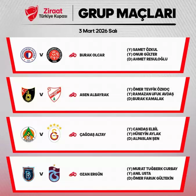 Türkiye Kupası'nda yarın oynanacak maçları yönetecek hakemler şöyle: